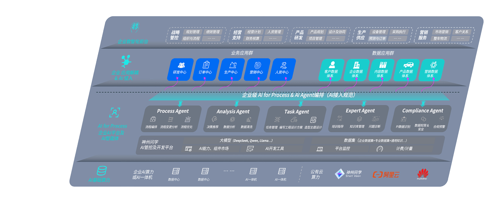 端到端的一站式AI工作空间深度融合了从企业战略规划到日常经营的全流程业务板块,,定向解决车企内部领域多、、、、部门多、、链条长、、、、场景碎片化等难题,,,,支持车企快速构建以AI为核心的生产力写作体系,,,实现任务执行与AI能力的无缝集成与交互